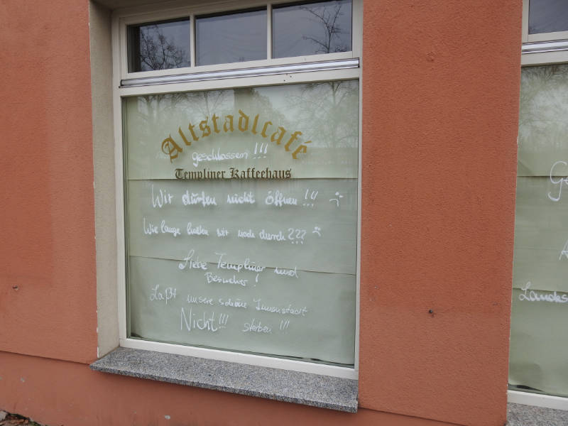 Der Einfallsreichtum der Templiner kommt hier zu kurz, erwähnt seien hier auf jeden Fall Herr Friedrich mit dem Tisch vor seinem Geschäft und die Jeans-Boutique am Markt mit der Ampel.