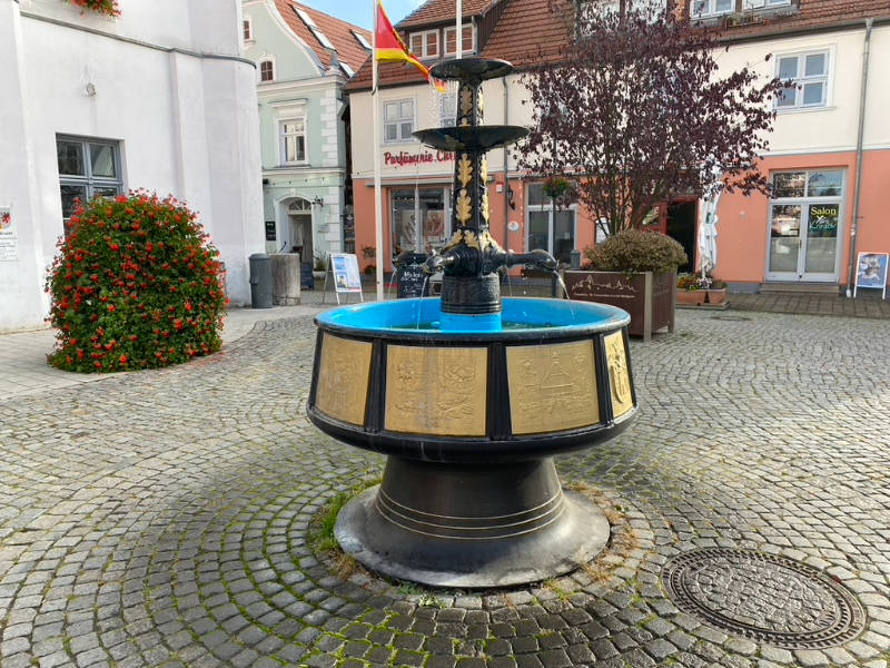 Das folgende Bild zeigt den Springbrunnen in Warnemünde: